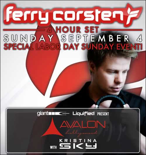 KRISTINA SKY confirmed for the highly anticipated return of MR. FERRY CORSTEN at a very special GIANT event on Labor Day Sunday at the World-Famous AVALON HOLLYWOOD. Pre-sales are highly recommended for this very special night!